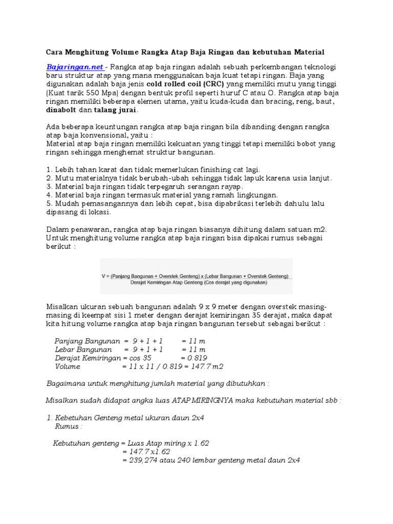 Cara Menghitung Volume Rangka Atap Baja Ringan Dan