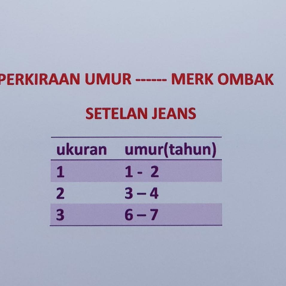 Tabel Ukuran Baju Anak Facebook