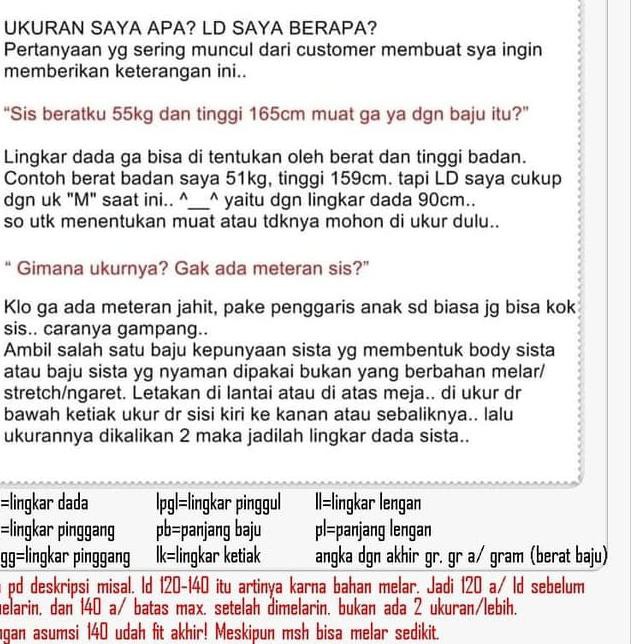 Ukuran Standar Baju All Size Pria Dan Wanita Ahyana Hijab