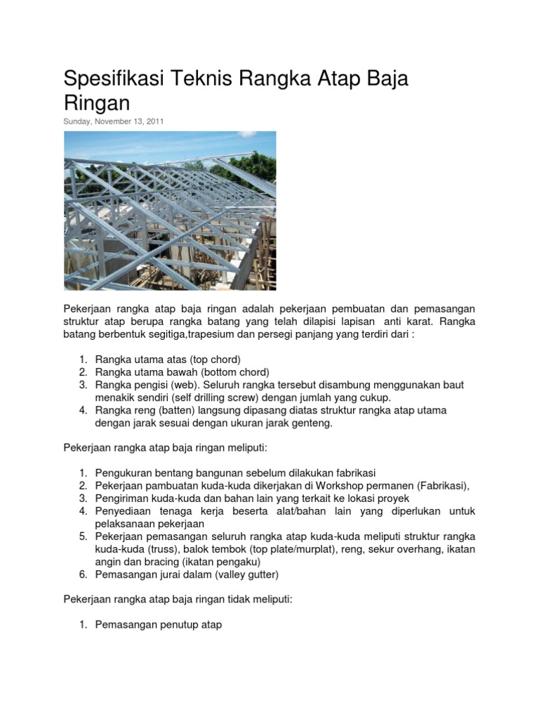 Spesifikasi Teknis Rangka Atap Baja Ringan