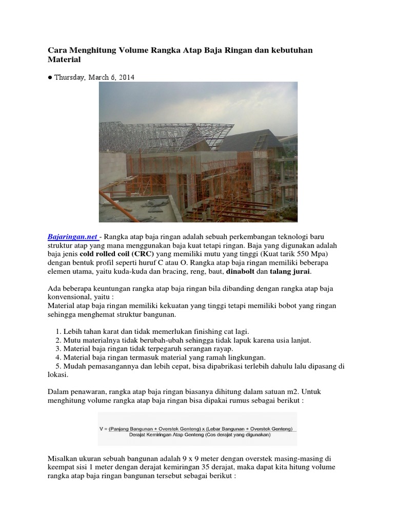 Cara Menghitung Volume Rangka Atap Baja Ringan Dan