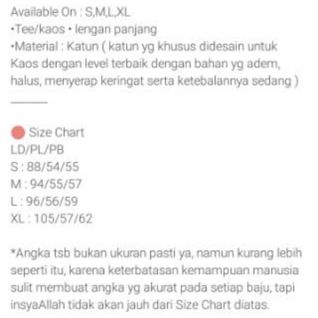Daftar Ukuran Baju Luar Negeri Terlengkap Ahyana Hijab