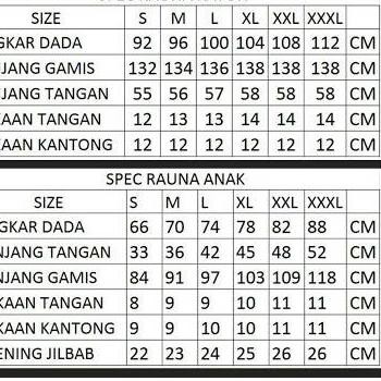 Size Chart Gamis Dan Baju Koko Di Segaleri Market